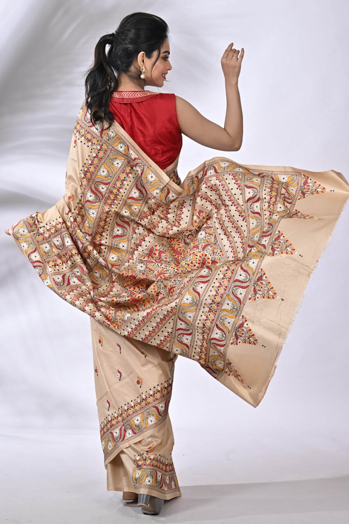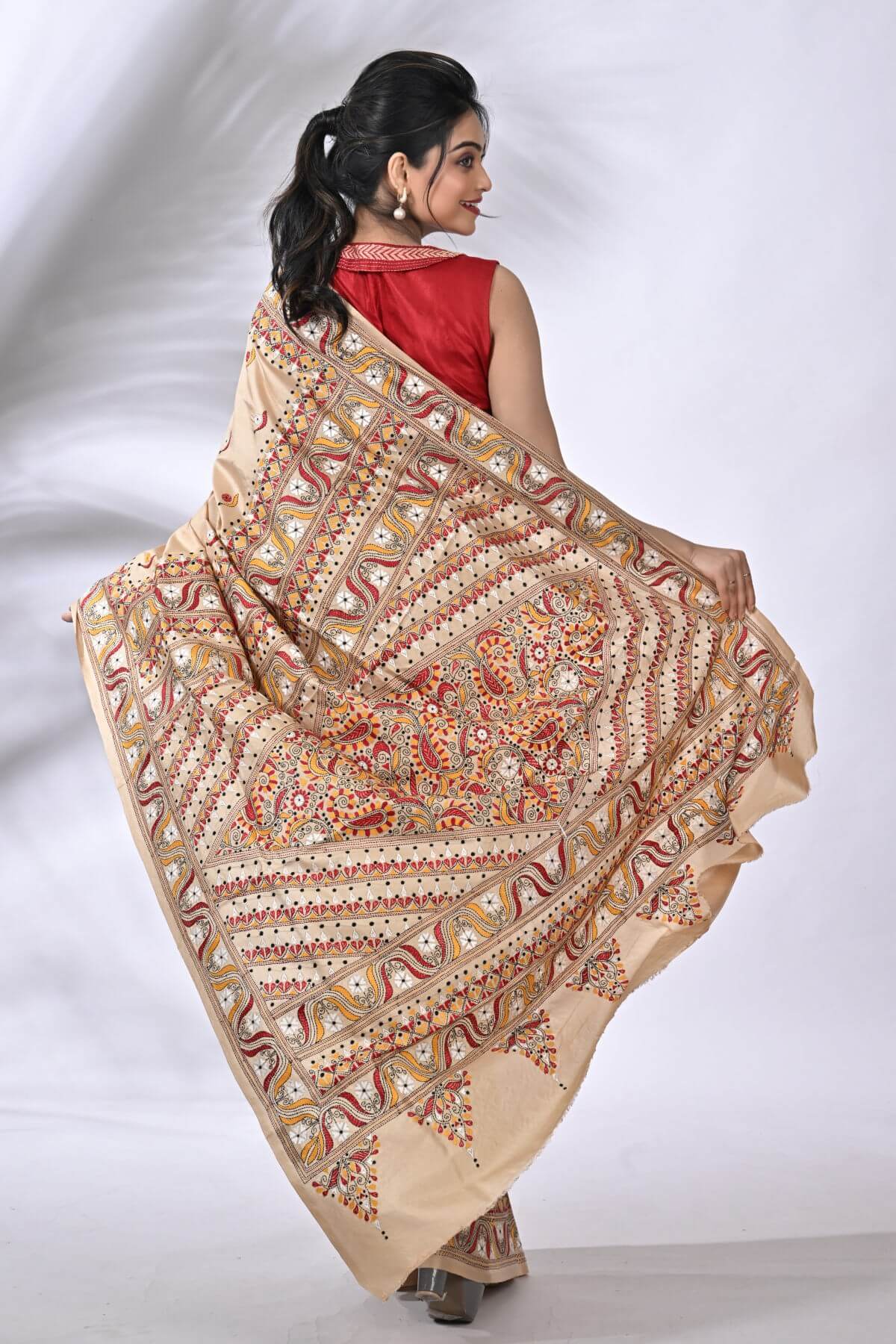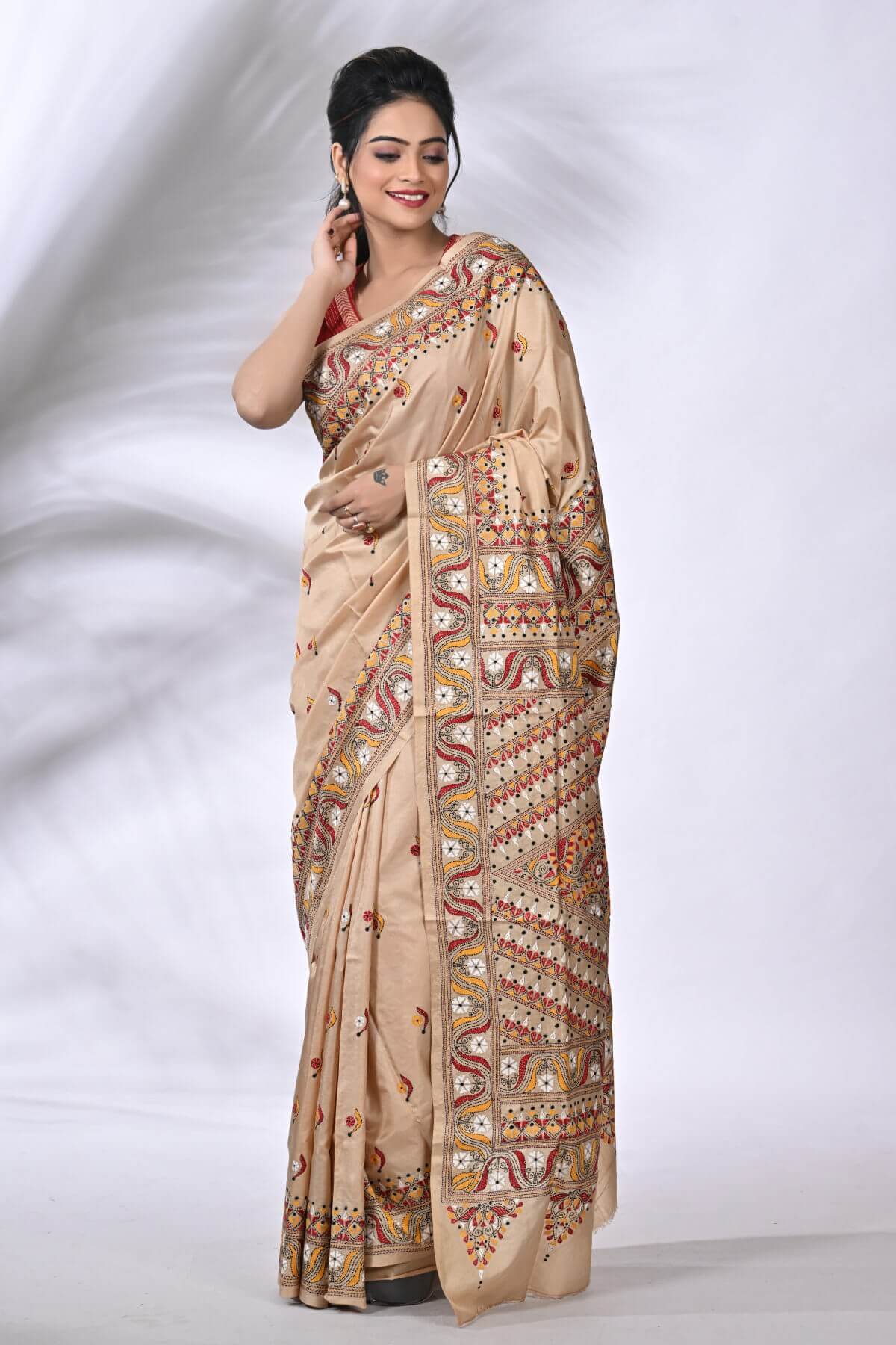 Beige Traditional Pure Gachi Tussar Kantha Saree